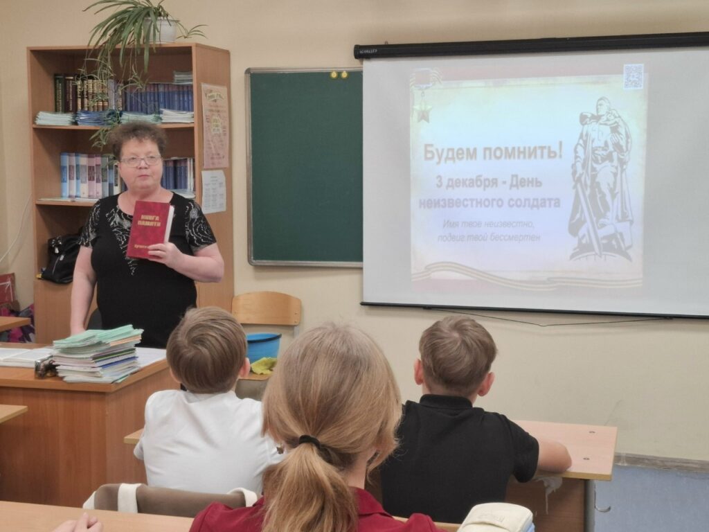 Ребята узнали историю учреждения «Дня неизвестного солдата». В1965 году в СССР начали увековечивать память героев Великой Отечественной войны. Тогда власти решили воздвигнуть памятник в честь солдата, погибшего в битве за Москву, у Кремлевской стены. Чей же прах покоится под плитами в Александровском саду? С этим связана любопытная история. Осенью 1966 года, во время строительства шоссе Москва — Ленинград, под Зеленоградом (в 1941 году здесь велись ожесточенные бои за Крюково) были случайно обнаружены останки советского солдата в хорошо сохранившемся обмундировании.