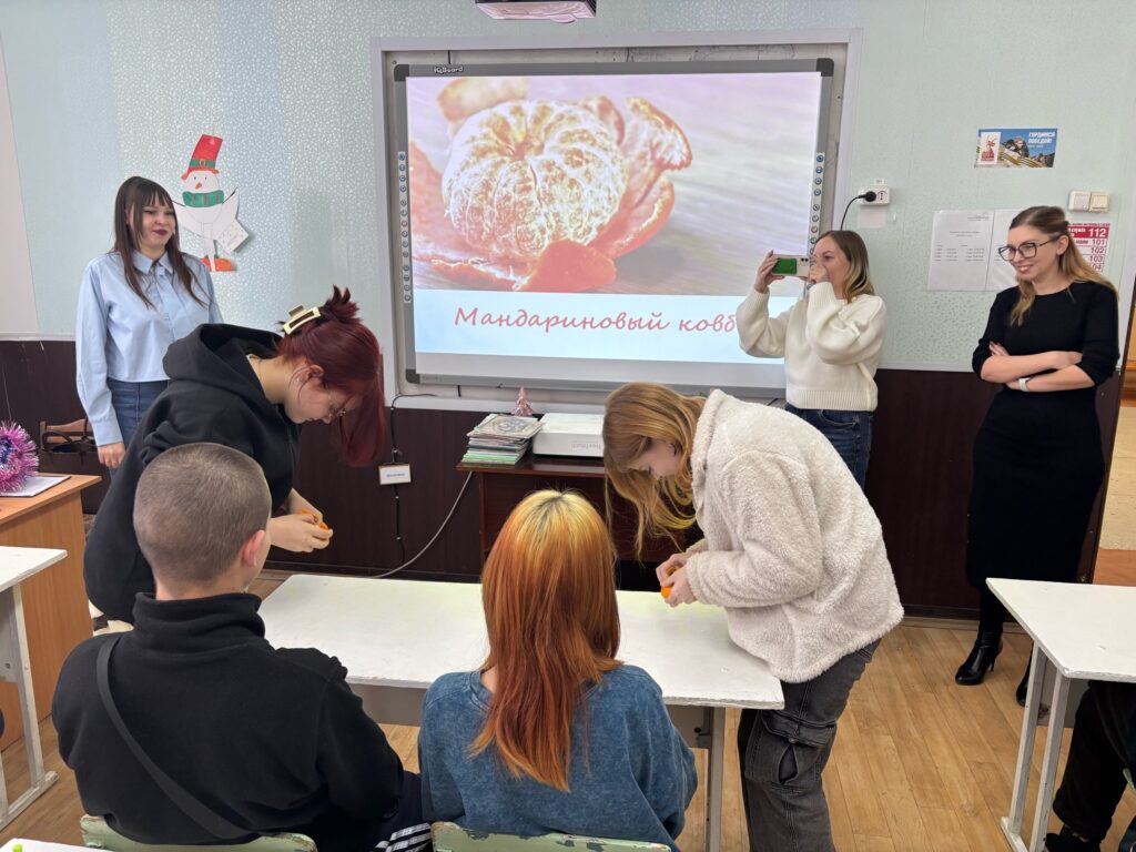 Наша встреча началась с того, что ребята поделились своими самыми теплыми воспоминаниями о праздновании Нового года в кругу семьи. Студенты рассказывали о любимых блюдах, которые готовили бабушки и дедушки, о семейных традициях, которые передаются из поколения в поколение, о забавных случаях и, конечно же, о том, как они загадывали желания под бой курантов.
