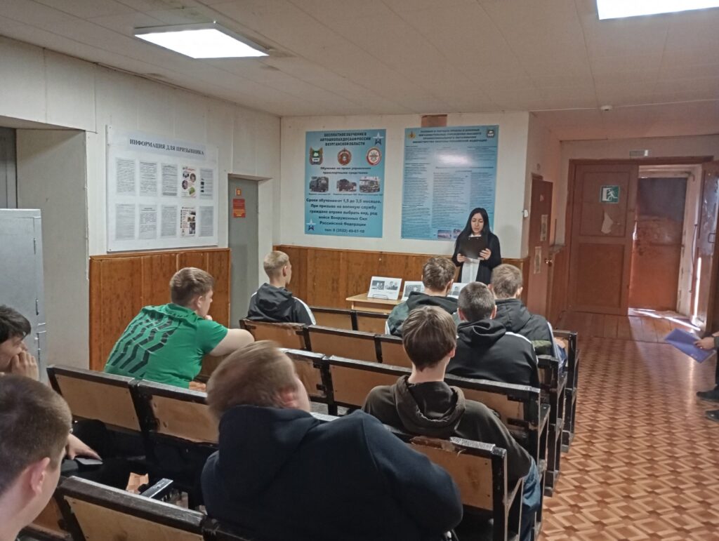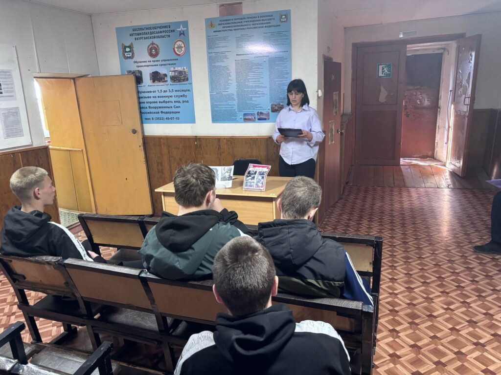 В рамках социального сотрудничества с военным комиссариатом Далматовского муниципального округа для призывников во время призывной комиссии был организован цикл мероприятий патриотической направленности. Такие инициативы направлены на воспитание гражданственности, уважения к истории и готовности к службе у молодого поколения.
