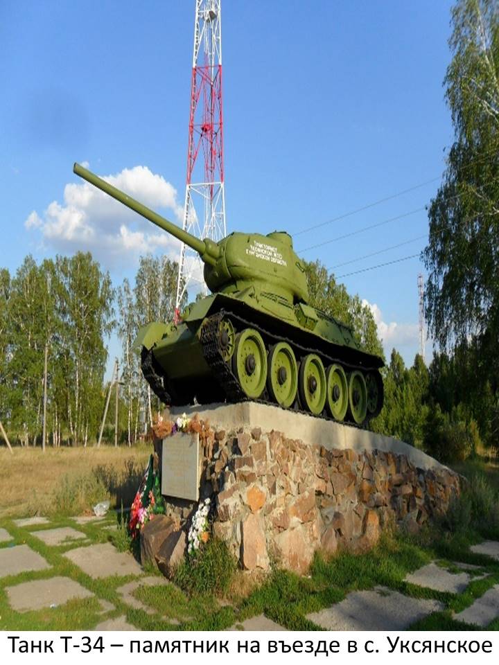 А 9 сентября 1978 г. на развилке дорог около сел Уксянка и Любимово был торжественно открыт памятник – танк Т-34 с надписью на башне «Тракторист Уксянской МТС Курганской области».