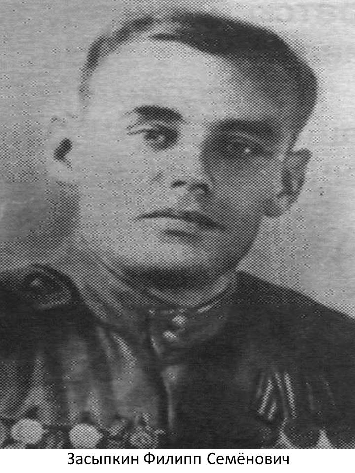 Кавалером двух орденов Славы – II и III степени был и танкист Филипп Семенович Засыпкин. Ребятам рассказали о том, что, когда в 1944 году рабочие Уксянской МТС собрали на строительство танка 100 тысяч рублей, они написали письмо товарищу Сталину, в котором просили назвать танк «Тракторист Уксянской МТС Курганской области» и вручить его земляку, бывшему шоферу Уксянской МТС Филиппу Засыпкину. Механик — водитель Засыпкин пообещал оправдать доверие земляков. В первом же бою экипаж вывел из строя несколько танков противника. «Уксянец» получил боевое крещение, а Засыпкину вручили орден Славы III степени. Филипп Семенович довел свой танк до Берлина. Прогрохотали гусеницы «Уксянца» по булыжной мостовой фашистского логова.