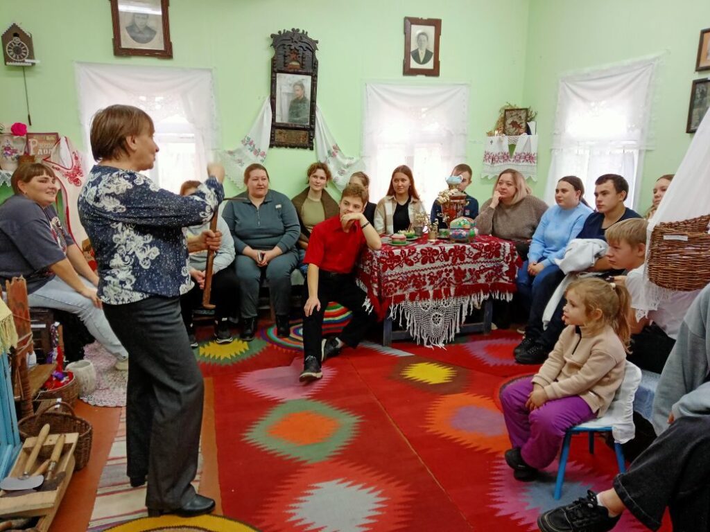 В дни осенних каникул в селе Новопетропавловское для детей был организован «осенний» цикл веселых, интересных и познавательных мероприятий. Ребята с удовольствием посещали библиотеку, сельский клуб, побывали на экскурсии в музее Новопетропавловского совета ветеранов. Председатель совета ветеранов и хозяйка музея Калинникова Любовь Геннадьевна, провела экскурсию по комнатам музея. Рассказала о современных событиях по «Вахте памяти», затем ребята окунулись в период советского времени, а в конце экскурсии очутились в крестьянской избе, где узнали о жизни, быте и традициях наших предков. Дети познакомились с основой русского жилища — русской печью, которая играла в доме главную роль и использовалась не только для отопления помещения, но и для приготовления пищи. Ребята увидели орудия труда, применяемые для различных хозяйственных целей: рубель, ухват, кочерга, деревянная и чугунная посуда. Библиотекарь познакомила школьников с самым почетным местом в крестьянской избе – красным углом. Это было святое место – здесь были иконы, поэтому его еще называли «святым».