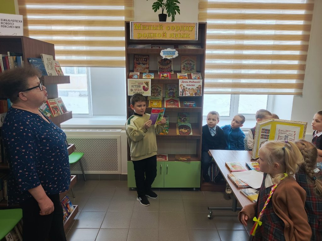 В рамках акции на детском абонементе оформлена книжно-иллюстративная выставка «Милый сердцу родной язык», на которой представлены произведения устного народного творчества. При посещении и просмотре выставки, с детьми побеседовали об устных формах народного фольклора.