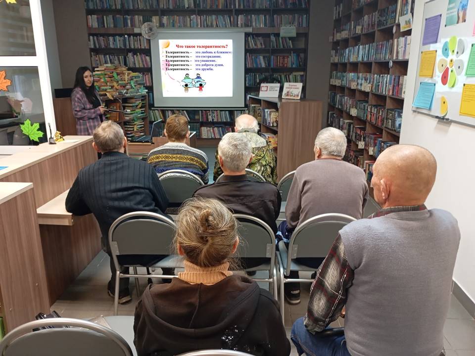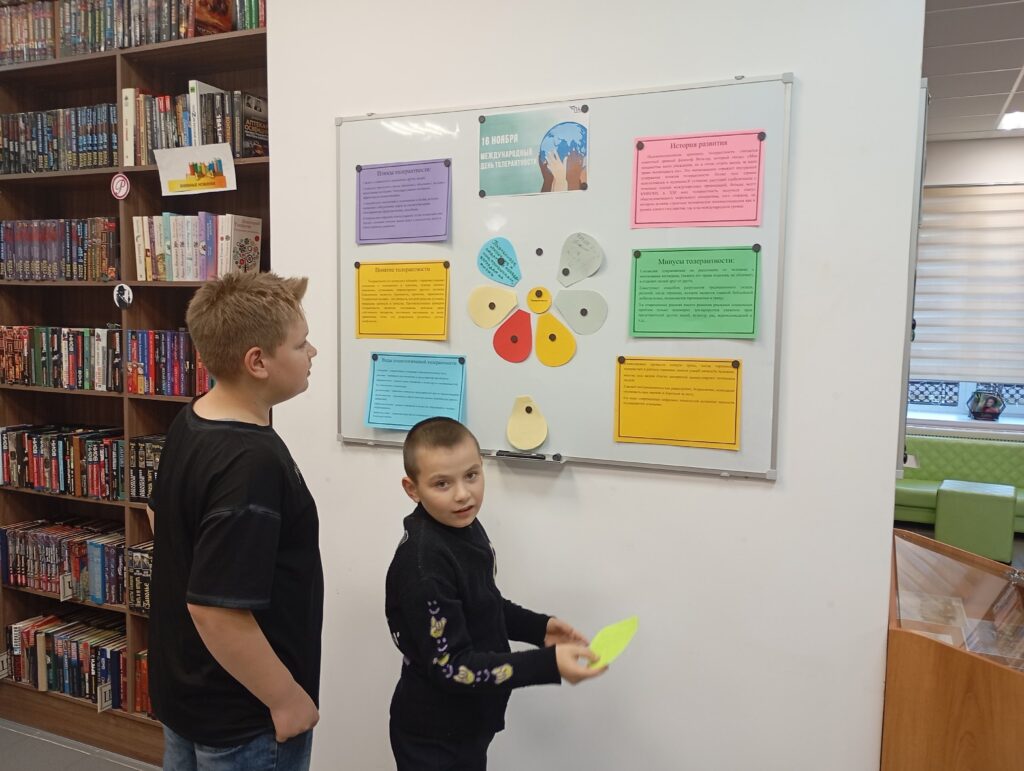 Для гостей на абонементе была проведена игровая программа «Страна толерантности», где читателям рассказали об основных принципах толерантности, о толерантном поведении: уважении друг к другу, к обычаям и традициям народов. Участники мероприятия написали своё мнение на лепестках «цветка толерантности»: что они понимают под этим словом?