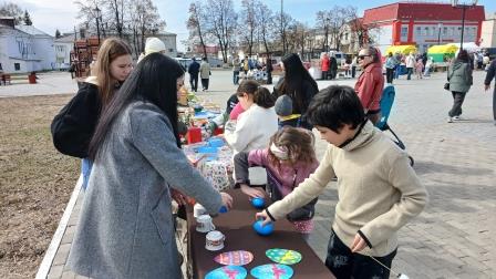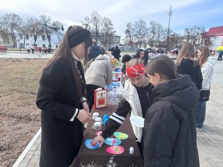 В минувшие выходные наш город превратился в настоящий портал времени, пригласив жителей и гостей в удивительное путешествие к истокам народной культуры. В рамках общегородской праздничной программы в честь Пасхи Христовой центральная библиотека организовала игровую площадку, позволив каждому окунуться в атмосферу старинных традиций и прикоснуться к духовному наследию наших предков.