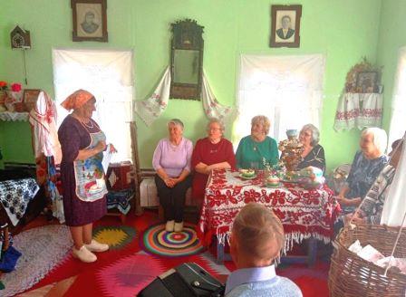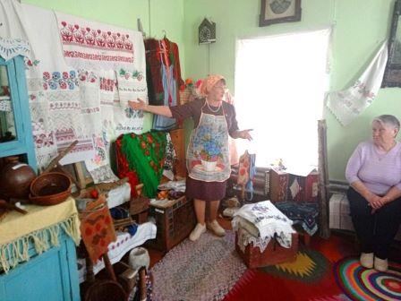 Все с интересом рассматривали и угадывали предметы крестьянской одежды. Хозяйка музея Любовь Геннадьевна Калинникова рассказала о том, что хранилось в бабушкином сундуке: постельное бельё, полотенца, скатерти, одежда. Всё украшалось вышивками. В сундуке хранились и дорогие вещи: письма от родственников, украшения, редкие покупные игрушки, которые доставали по праздникам, куклы — обереги.