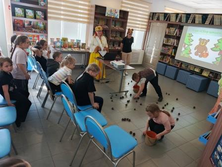 Ребята участвовали в викторинах и конкурсах «Мир сказочных героев», «Волшебное лукошко», «Сказочная почта», «Сказочные заклинания», инсценировали для Бабы Яги сказку «Репка», помогали медвежонку собирать шишки.
